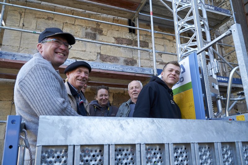 << < > >> Himmelfahrt 2023 Besichtigung Kirche Bildbeschreibung: Besichtigung der Gleinaer Kirche beim Dachumbau Bilderkategorie: