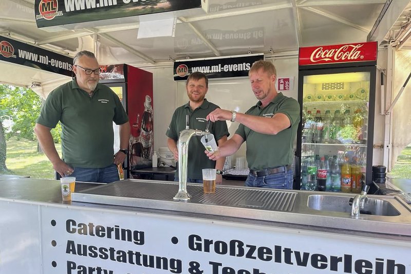<< < > >> Park- und Weinfest 2023 Bildbeschreibung: Unsere Sänger hatten die Getränkeausgabe mit übernommen Bilderkategorie: