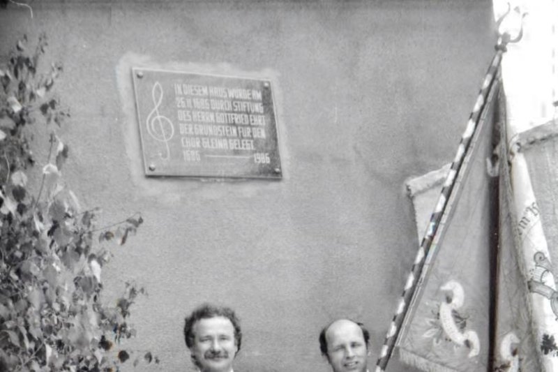 << < > >> 1986 Bildbeschreibung: Bei der Einweihung des Gedenksteines zu Ehren des Chorstifters Bilderkategorie: