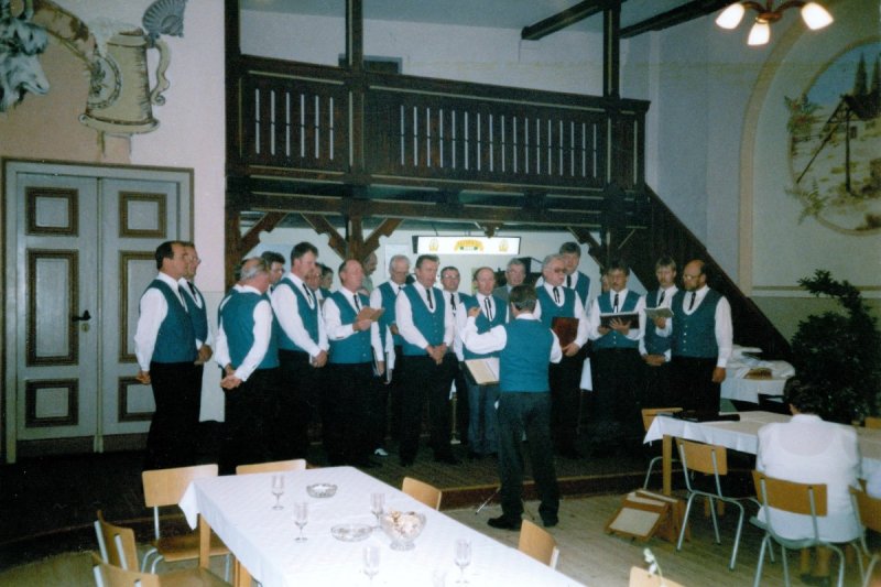 << < > >> In Ebersroda Bildbeschreibung: Ein letztes Ständchen zu Ehren der Wirtsleute vor der Schließung der Gaststätte "Zum wilden Eber" Bilderkategorie: